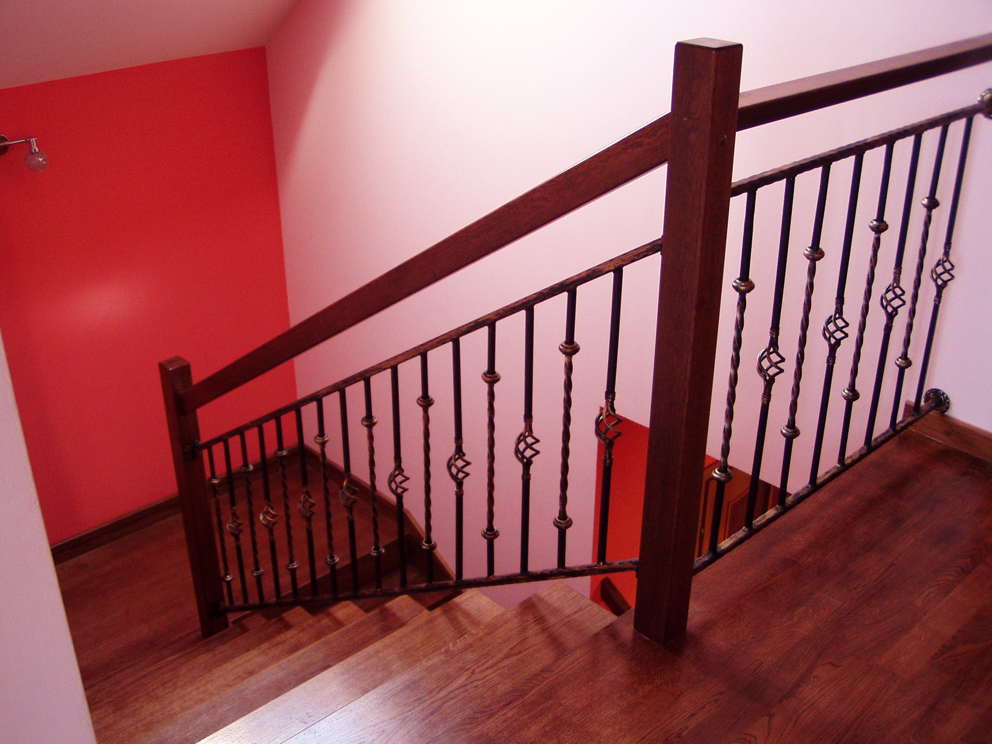 Wir unterscheiden zwischen waagerechten und geneigten (Treppen-)Innengeländern. Die Grundelemente aller Balustraden sind: Pfosten, Handläufe (auch Haltegriffe genannt) und Füllung.