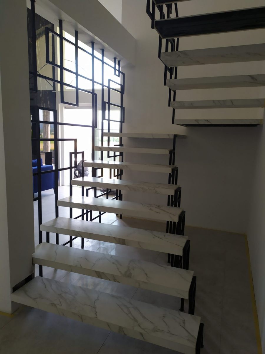 Wir fertigen unsere Treppen mit Hingabe und Präzision, wodurch sich ihre Haltbarkeit nicht von anderen gängigen Treppenformen unterscheidet, unabhängig vom Material, aus dem unsere Treppen hergestellt sind. Wenn es zwischen den Stockwerken keine nennenswerten Höhenunterschiede gibt, können Sie einläufige durchbrochene Treppen verwenden. Wenn es jedoch einen großen Höhenunterschied gibt, empfiehlt es sich aus Komfortgründen für die Bewohner und zur Platzersparnis, zweiläufige durchbrochene Treppen zu wählen – diese können entweder unterbrochen oder parallel sein.