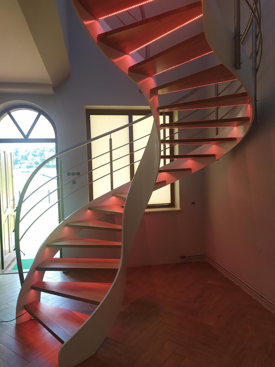 Moderne Treppen sind jedoch nicht nur auf die Glastreppe beschränkt – für ihre Herstellung kommen auch Holz- und Metalltreppen zum Einsatz. Moderne Treppen werden auf Grundlage eines individuellen Designs hergestellt, wodurch sie perfekt zum Interieur passen, für das sie bestimmt sind, und die Bedürfnisse der Kunden zu 100 % erfüllen. Sie können ein außergewöhnliches Design, eine außergewöhnliche Form oder eine innovative Beleuchtung aufweisen und durch die Kombination verschiedener Materialien können moderne Treppen eine einzigartige und interessante Form erhalten. Sie können einen zentralen Platz in Ihrer Wohnung oder Ihrem Haus einnehmen und ihr ungewöhnliches und originelles Erscheinungsbild wird sowohl tagsüber als auch nachts die Aufmerksamkeit auf sich ziehen.